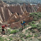 Die Bikerouten sind landschaftlich spektakulär, jedoch eher einfach zu befahren. Geübte fahren etwas schneller und schon wird es recht flowig. Da wir genügend Zeit haben, warten wir an den unzähligen bestaunenswerten Felsobjekten aufeinander. Kurze kräftezehrende Aufstiege überwindet man am Besten zu Fuss. Die Tagesstrecken sind im Vergleich zu Bikereisen anderswo ziemlich kurz. Da es viel zu Bestaunen und zu fotografieren gibt, ist unser Stundenmittel recht bescheiden. Wer abends noch nicht genug hat, überzeugt den Reiseleiter, eine spannende Zusatzschlaufe vom Hotel aus anzubieten.