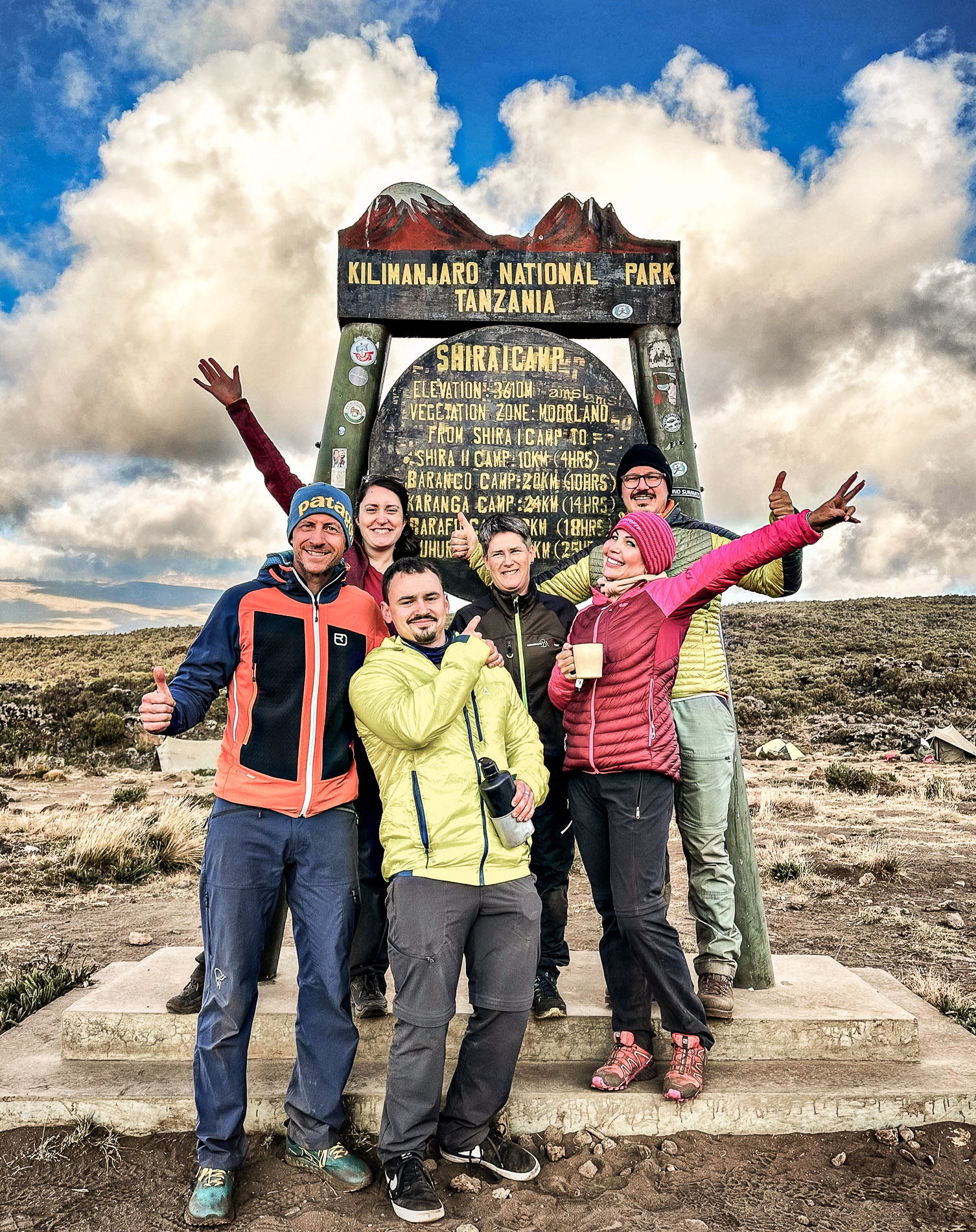 Mit dabei: kiliman, Kurt Hegglin und seine lokalen tansanischen Helfer. Während 8 Tagen sind insgesamt 77 Personen miteinander unterwegs auf der Lemosho-Route.